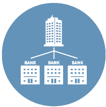 本サービス向けに1本の回線を敷設頂くだけで、金融機関と個別に回線敷設することなく
